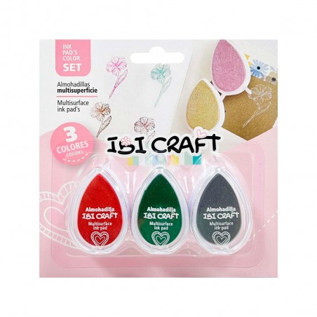Set con 3 almohadillas de colores IBI CRAFT, en 3 colores claros para decorar, sellar, estampar y dar efectos a tus creaciones.