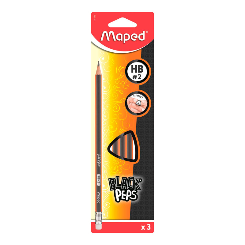Lápices de grafito HB de alta calidad, elaborados para cumplir las expectativas de jóvenes y adultos. Diseño triangular ergonómico para una mejor y más cómoda sujeción. Hecha de madera de tilo, no se astilla y facilita sacarle punta. Mina blanda y resistente que brinda un trazo limpio y resistencia a los golpes. Presentación en blister de 3 unidades.